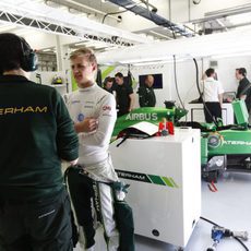 Pastor Maldonado a la espera en el pit-lane de Sakhir