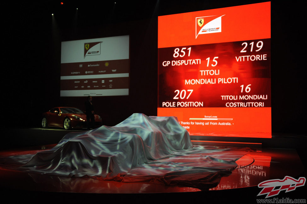 La presentación en Maranello se inició con una iluminación oscura antes de desvelar el monoplaza.